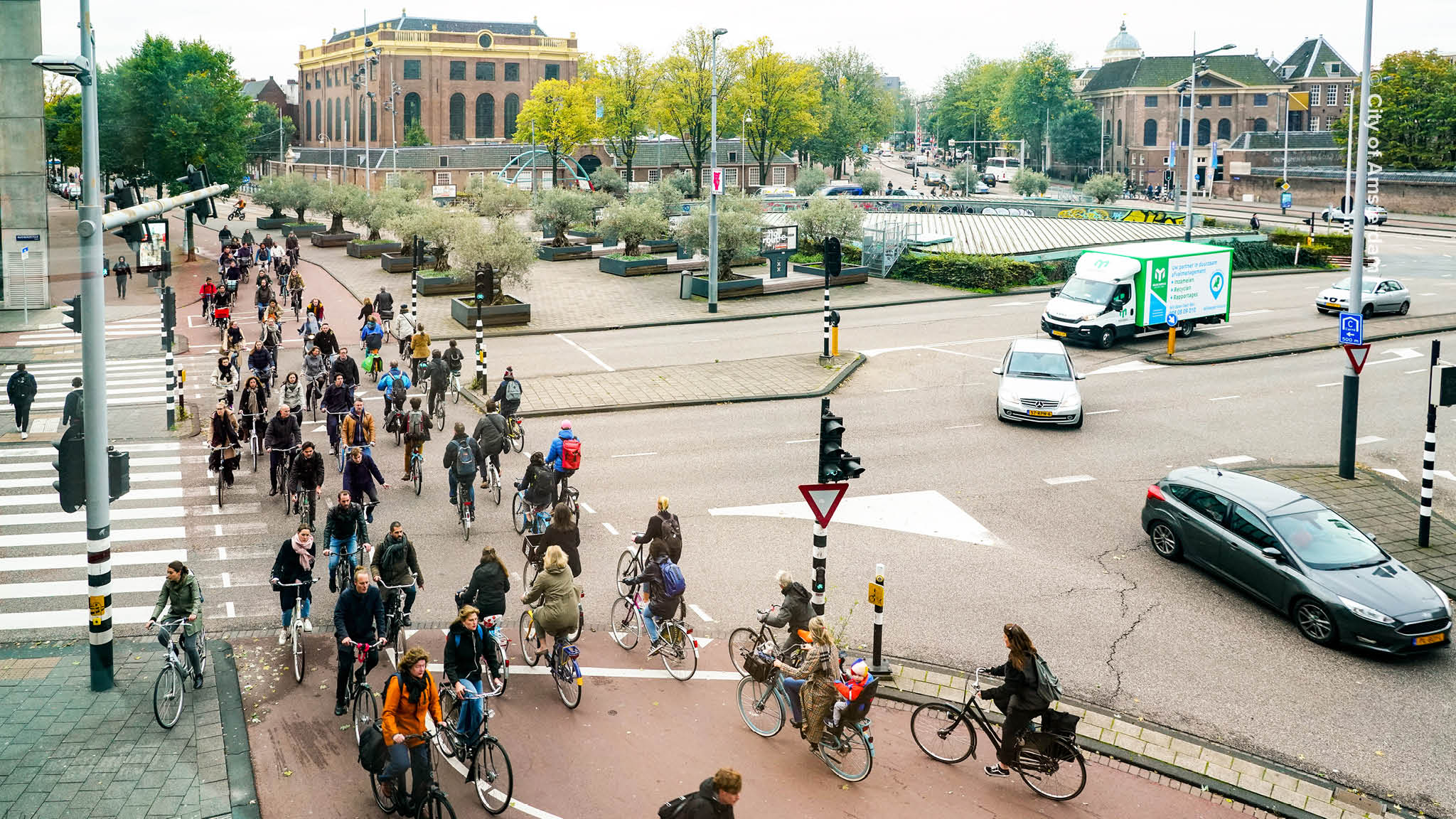 In a city known for its many canals and small charming streets, land is scarce and water abounds. Finding enough space to keep up with bicycle parking demands is not obvious, but Amsterdam has continued innovating and using the water to its advantage. In 2023 the city opened a spectacular underwater bicycle parking garage at the Central Station, adding 11,000 new spaces underneath the canal. This was a global first and proved once again that Amsterdam is a leader in cycling innovation. This brings the total secured bicycle-parking to an impressive 42,000 available spaces. Amsterdam is also reclaiming space from cars, transforming the historic canal belt into a continuous fietsstraat (bicycle street) as part of the Binnering project.