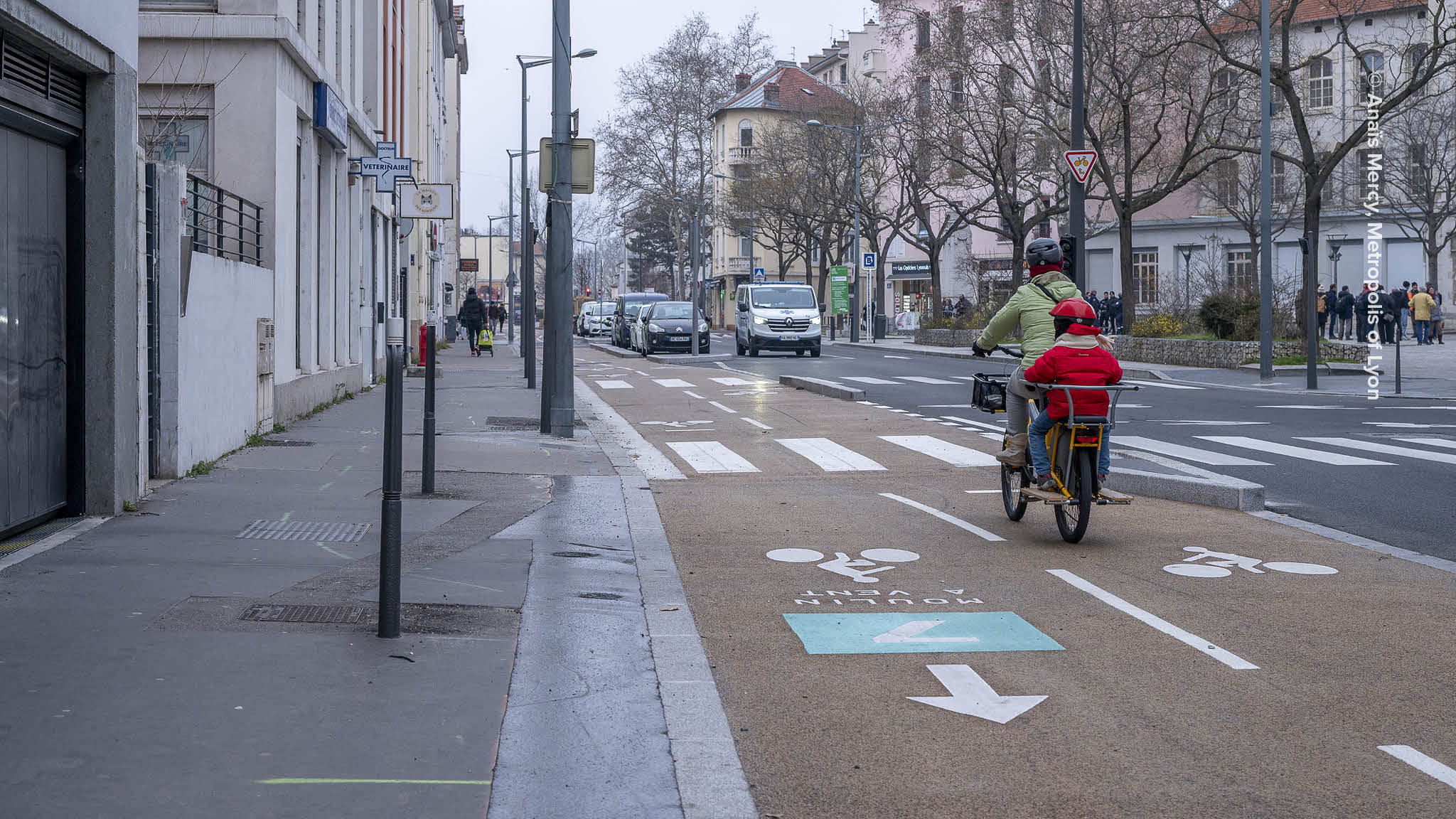 As Lyon’s bicycle network keeps expanding at a steady pace, often through the default use of bidirectional bicycle tracks, the number of cyclists is currently growing rapidly. In order to sustain its momentum and safety goals, the city must evolve from a flow-based mindset into a truly spatial one, embracing the full transformative power of the bicycle as a tool to reimagine its public space.