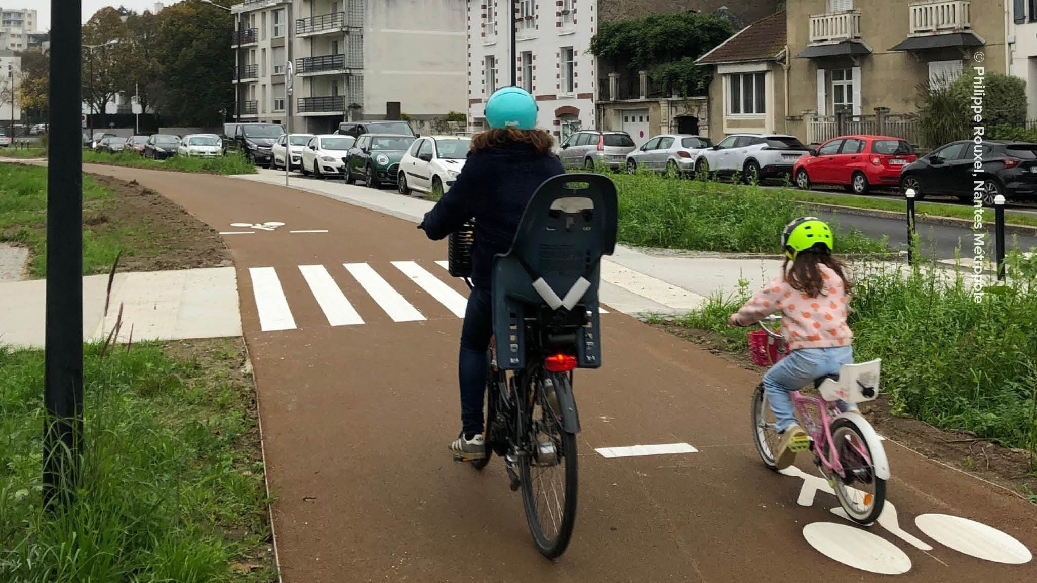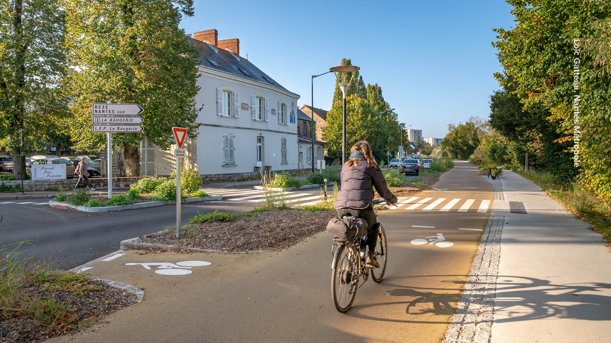 Nantes is demonstrating that building a cycling city is about ambition, consistency, and courage. After a period of well-intentioned but fragmented initiatives, the city chose to accelerate its transformation by developing the Grandes Voies Vélo, a bicycle infrastructure network designed to make daily bicycle trips safe and comfortable for everyone. Reinforced by a strong, etched identity that plays a crucial role in wayfinding, these corridors have been built to a high standard. This approach states a clear philosophy: cyclists deserve a quality infrastructure that values them. The city’s streetscape is rapidly evolving, creating neighborhood and suburban connections that feel efficient and safe for bicycle users.