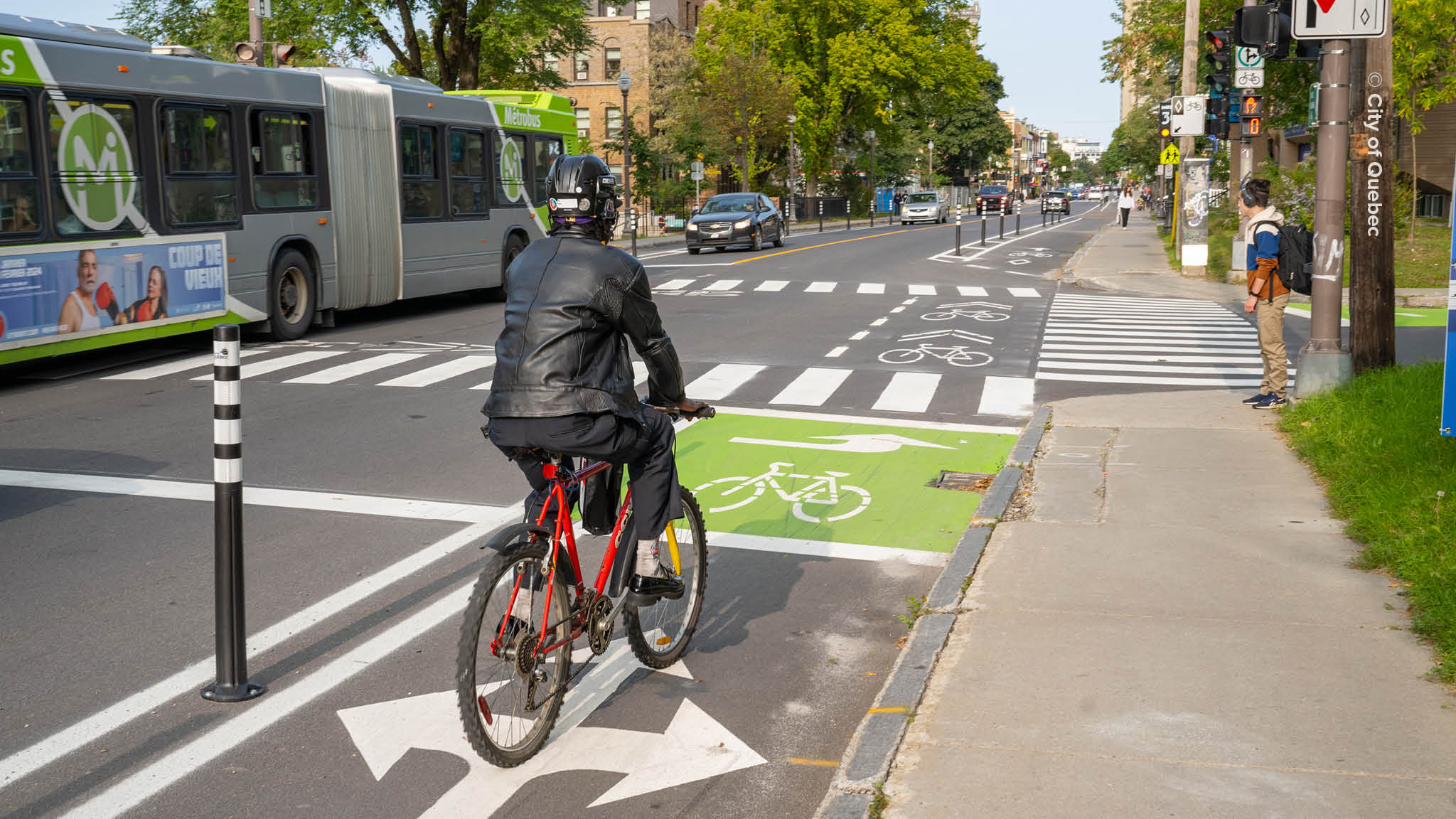 In a city once known for having a rather mediocre quality cycling infrastructure, the CVC project has triggered a significant qualitative leap that has surpassed the “Corridors” themselves and includes transitional street design. By applying best practices and studying other cities’ experience and expertise, Québec is moving fast – as evidenced by the 16 km of separated infrastructure delivered between 2022 and 2024.