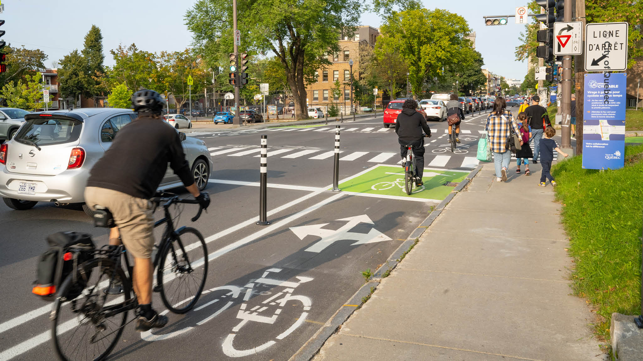 In 2023, the city announced it planned to create a 150 km network of safe, connected, and comfortable bicycle routes by 2034, a bold move in a city where every transportation project sparked bitter debate. Initially called Corridors Vélo cité, the infrastructure was renamed Corridors VivaCité (CVC) one year later to highlight its inclusiveness and broader social benefits which include public health and urban vitality. The impact was immediate: along the CVC Chemin Sainte-Foy, bicycle and pedestrian traffic rose by 6.9% and 94% respectively between 2023 and 2024, and retail sales climbed by nearly 10%.
